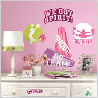 Show off your spirit with these lively cheerleading wall decals. Any cheer enthusiast will love having these pom-poms, megaphones, cheer silhouettes, and popular phrases in their room. RoomMates wall decals can be applied to any smooth surface: walls, windows, furniture, ceilings, headboards... the possibilities are endless! And since every decal is removable and repositionable, you can remove and re-apply the stickers over and over again with no damage to the surface. Makes a great gift for cheerleaders of all ages! Go head follow the instructions and Enjoy!!!