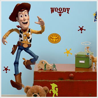 Peel & Stick By RoomMates Toy Story - Woody Giant Wall Decals !!! - Toy Story 3's favorite cowboy, Woody, is now here in decal form! This giant wall decal is easy to assemble, apply, and reposition on your walls. Every Toy Story fan will love decorating with Woody! Pair him with Jessie or Buzz for a neat duo in a bedroom, or match him with one of our XL wall murals (sold separately) to create a great Toy Story-themed room! Go head follow the instructions and Enjoy!!!